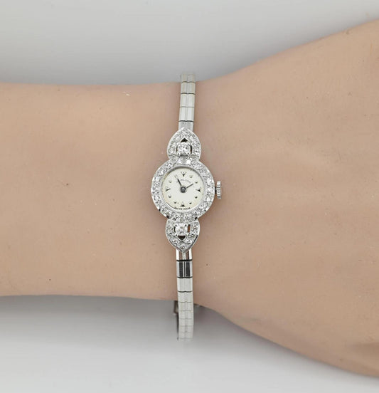 Exquisite Art Deco 14K White Gold & Diamond Ladies Cocktail Watch