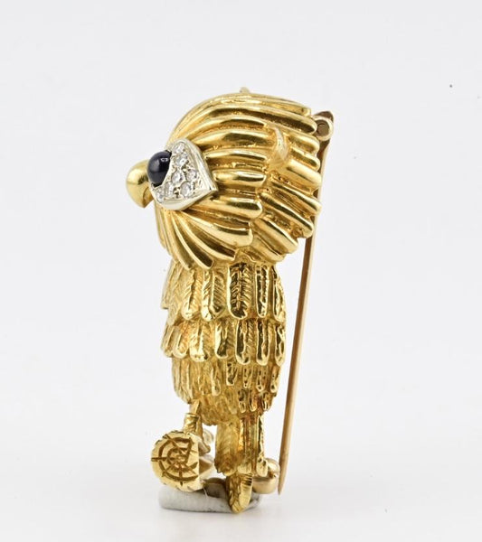 18K Solid Yellow Gold Owl Brooch 19.09g Diamond Eyes Marked 18K