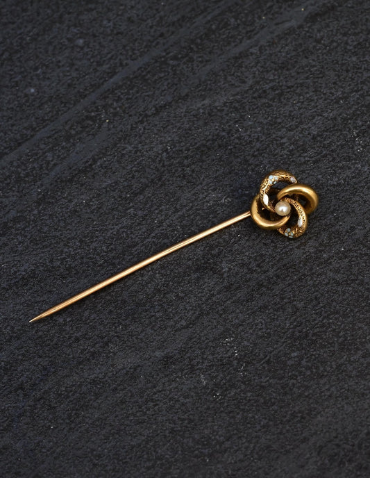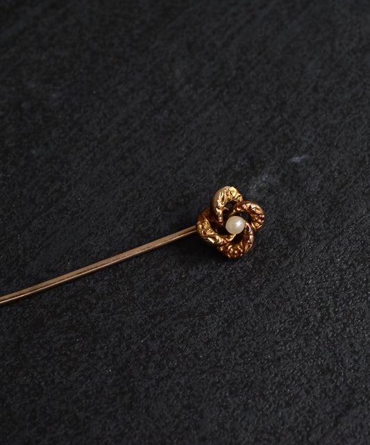Antique 10K Yellow Gold Pearl Stick Pin 2.25" Floral Design 0.99g