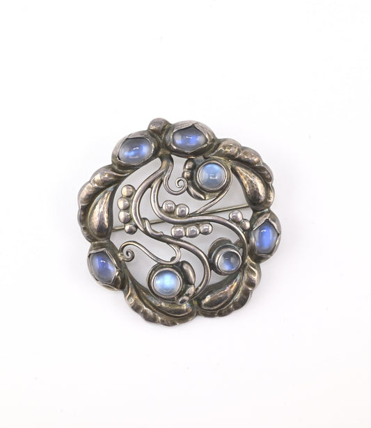 Georg Jensen Sterling Silver Moonstone Brooch • Art Nouveau Style • 17.39g