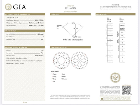 1.60ct GIA Old European Cut Diamond | Natural I VS2 | Antique Loose Stone