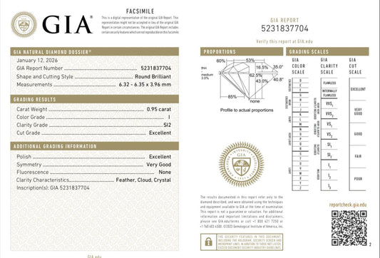 GIA Certified 0.95ct Round Brilliant Diamond | Natural I Color SI2 Excellent