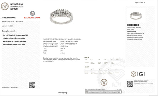 IGI Certified 14K White Gold Diamond Band – 0.25ct, 27 Natural Diamonds Size 4